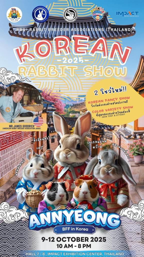 งานกระต่าย (Rabbit Show) สำหรับดูการประกวดจากสมาคมฯ หรือห้างสรรพสินค้าต่างๆ ที่จัดแสดงโชว์ จัดขึ้นปีละ 4- 6 ครั้ง ไม่ว่าจะเป็นงาน American Rabbit Show หรือ Pet Expo สำหรับใครที่กำลังต้องการพาสัตว์เลี้ยงไปเดินเล่นดูกระต่ายสวยๆ หรือช้อปปิ้งของใช้กระต่าย มาดู Schedule เตรียมตัววางแผนไว้ ไม่ควรพลาดในปี 2025 นี้ และปีต่อๆ ไป
