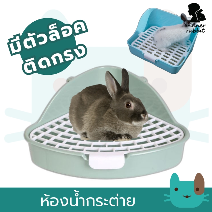 แม่ชอบแบบนี้นะ ห้องน้ำแบบใหญ่ๆ ไปเลย แล้วก็ใส่แผ่นซับฉี่ไว้ข้างล่าง กระต่ายไม่กัด แล้วน้องก็ไม่ค่อยนอนทับด้วย สามารถวางถ้วยอาหารไว้ข้างบน เวลาน้องอึ ฉี่ ก็เก็บทิ้ง่าย หักคะแนนตรงที่ต้องไว้ในคอก ยัดเข้ากรงไม่ได้มันใหญ่
