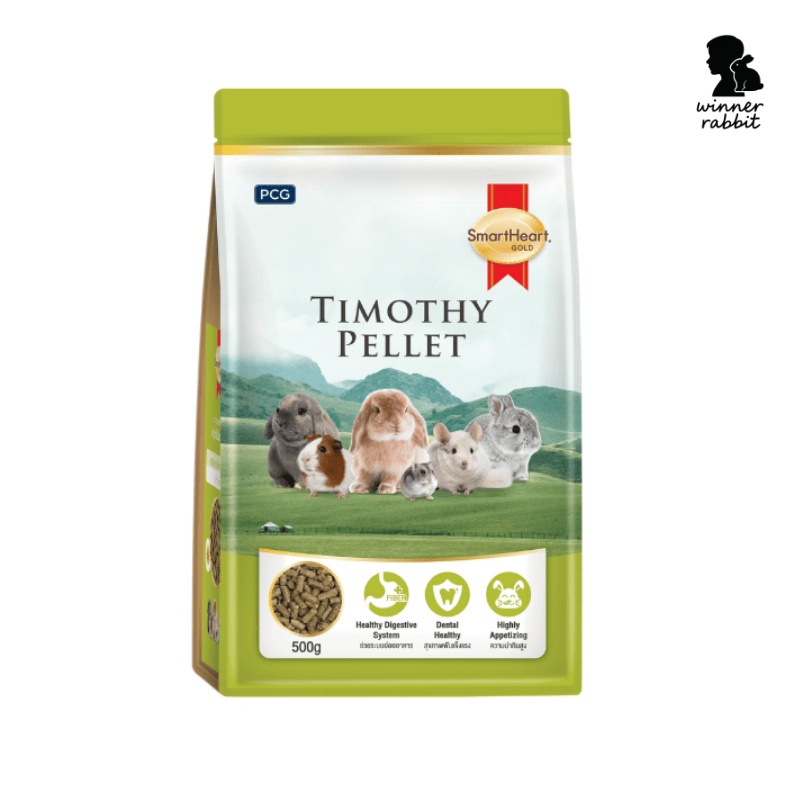 หญ้าทิโมธี ยี่ห้อ SmartHeart Gold Timothy Pellet แม้จะเป็นหญ้าอัดเม็ด แต่มีส่วนผสมหลักคือหญ้าทิโมธี เหมาะสำหรับเสริมไฟเบอร์ เหมาะสำหรับใช้เป็น อาหารเสริม หรือสลับให้กินกับหญ้าเส้น สำหรับกระต่ายที่ปฏิเสธหญ้าเส้นอย่างรุนแรง